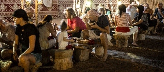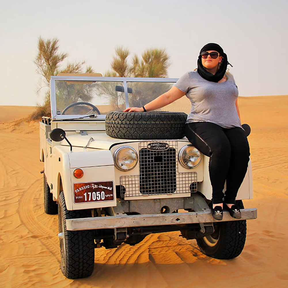Dubais luxuriöseste Wüstensafari umfasst eine Wüstenfahrt in einem Land Rover Defender, gefolgt von einem 6-Gänge-Menü und Entertainment mit Akrobatik und Feuer.