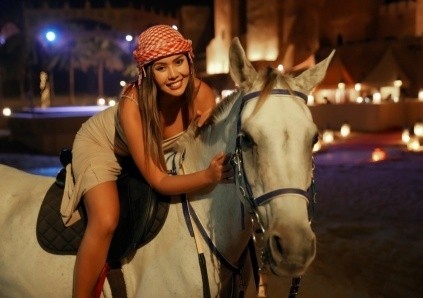 Als nächstes begeben Sie sich zum einzigen luxuriösen Festungscamp, wo Sie ein Abendessen in Buffetform, Grillgerichte und traditionelle Live-Unterhaltung genießen. Erleben Sie Wüstenaktivitäten wie Falken-Interaktionen, Ausritte mit Pferden, Kamelritte und mehr. Erleben Sie echte arabische Gastfreundschaft!